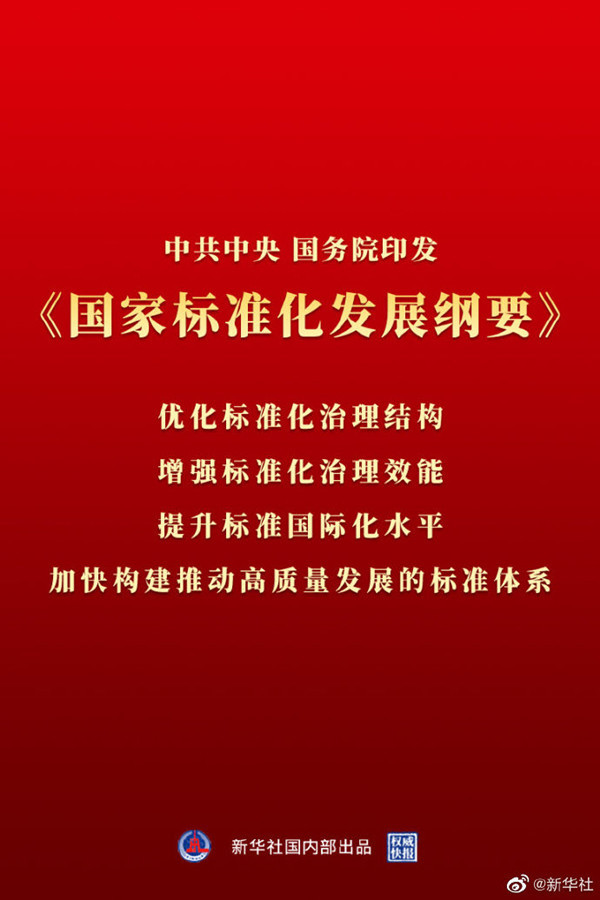 中共中央、國(guó)務(wù)院印發(fā)《國(guó)家標(biāo)準(zhǔn)化發(fā)展綱要》,為未來(lái)15年我國(guó)標(biāo)準(zhǔn)化發(fā)展設(shè)定了目標(biāo)和藍(lán)圖。標(biāo)準(zhǔn)是經(jīng)濟(jì)活動(dòng)和社會(huì)發(fā)展的技術(shù)支撐,與人們的生活息息相關(guān)。未來(lái),從住房、物業(yè)服務(wù),到新能源汽車、無(wú)人駕駛,以及平臺(tái)經(jīng)濟(jì)、共享經(jīng)濟(jì)等領(lǐng)域,都將推進(jìn)完善標(biāo)準(zhǔn)化建設(shè)。